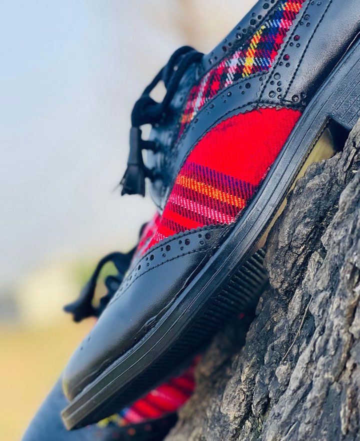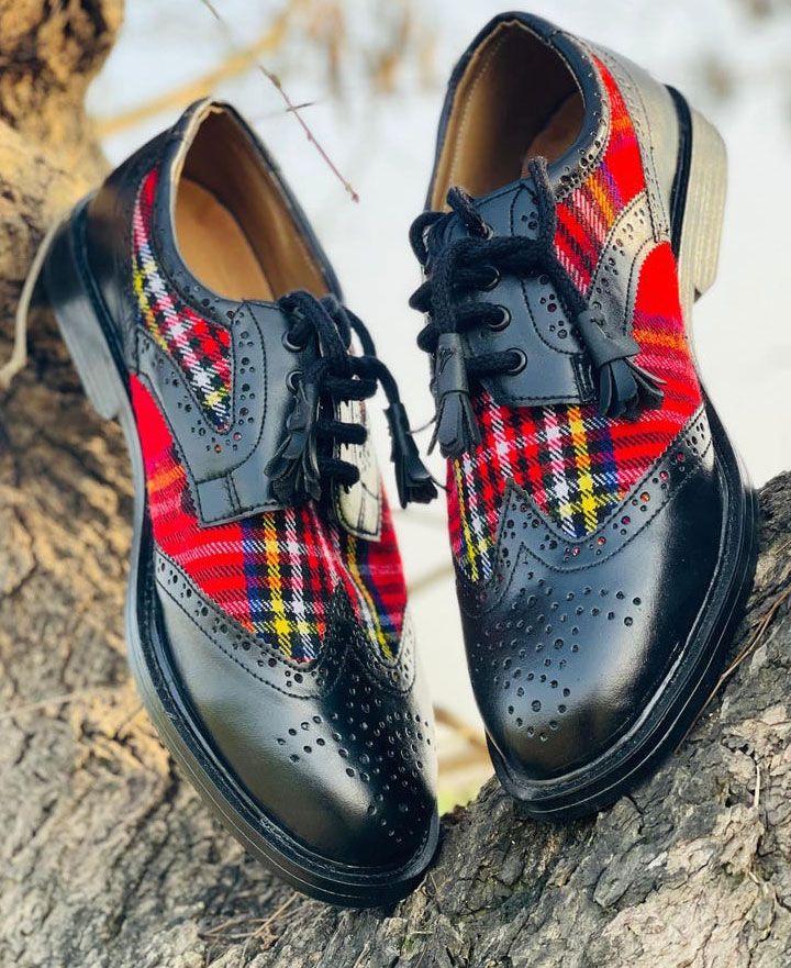 Black Leather Matching Tartan Leather Ghillie Shoes