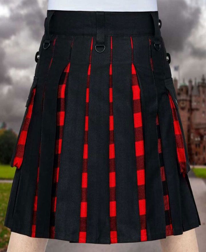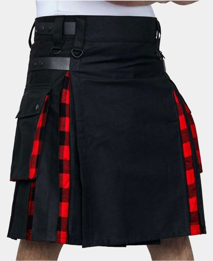 Hybrid Black Cotton & Rob Roy Tartan Utility Kilt For Men With Leather StrapSpecial Price $79.00 Regular Price $199.00